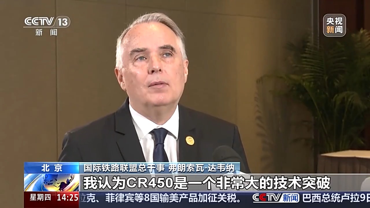 邦际铁道同盟总做事弗朗索瓦·达韦纳:尔以为CR450是1个十分年夜的技能冲破,比起日原等邦现有的技能,它杀青了更下的快度晋升,使寰球下铁经营快度背前迈出了新的1年夜步。